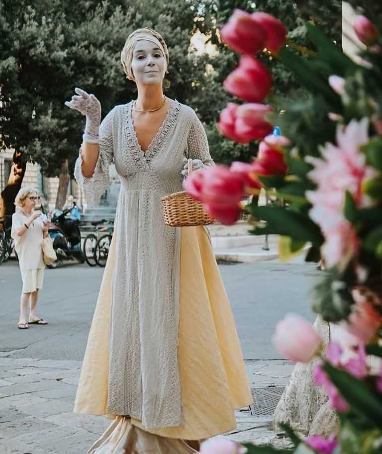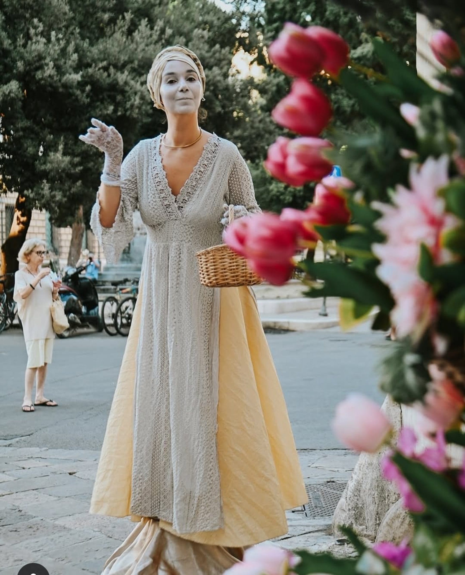 Una statua vivente poetica che si anima per donare sorrisi, parole e piccole poesie ai presenti.