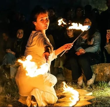 La proposta include spettacoli diversi, adattabili a ogni occasione. Heart of Fire, lo spettacolo con fuoco e manipolazioni fiammeggianti, è l’ideale per eventi serali, festival, sagre, piazze e cerimonie che cercano un impatto scenico forte e suggestivo. È una performance intensa e coinvolgente che porta luce, ritmo e stupore in ogni situazione.