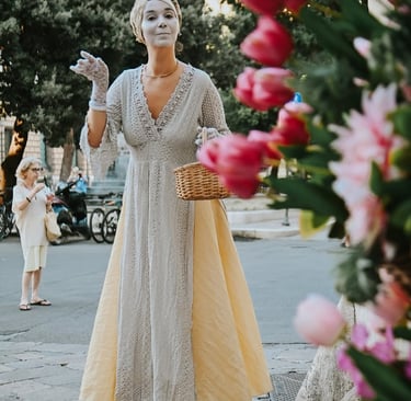 Signora Nuvola è una elegante statua vivente poetica che interagisce con delicatezza e piccoli doni di parola, perfetta per matrimoni, inaugurazioni, eventi culturali e contesti raffinati. Porta un tocco di gentilezza e incanto, creando connessioni sottili e memorabili con gli ospiti.